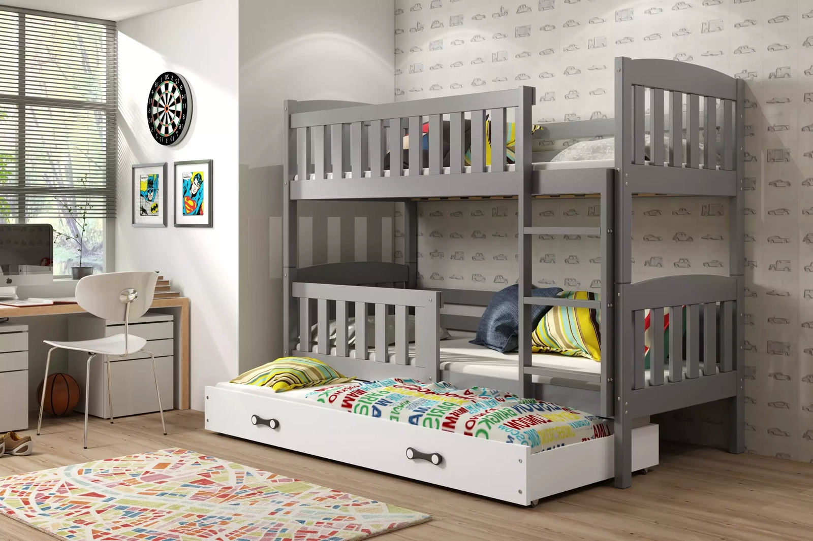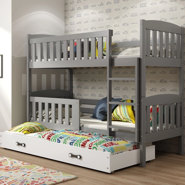 KUBUŚ 90X190 háromszemélyes ifjúsági ágy fiókkal, grafit/fehér