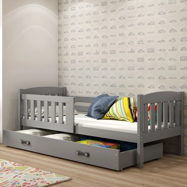 KUBUŚ 90X200 egyszemélyes ifjúsági ágy fiókkal, grafit