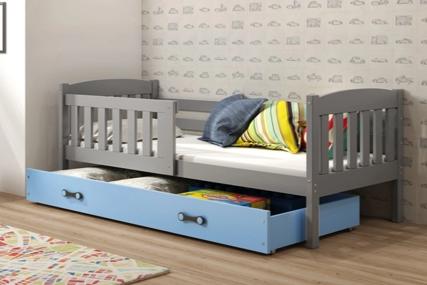 KUBUŚ 90X200 egyszemélyes ifjúsági ágy fiókkal, grafit/kék