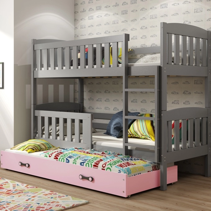 KUBUŚ 90X200 háromszemélyes ifjúsági ágy fiókkal, grafit/rózsaszín