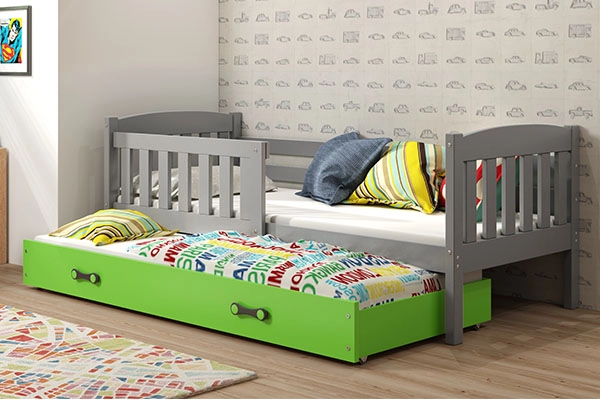 KUBUŚ 90X200 kihúzható ifjúsági ágy fiókkal, grafit/zöld