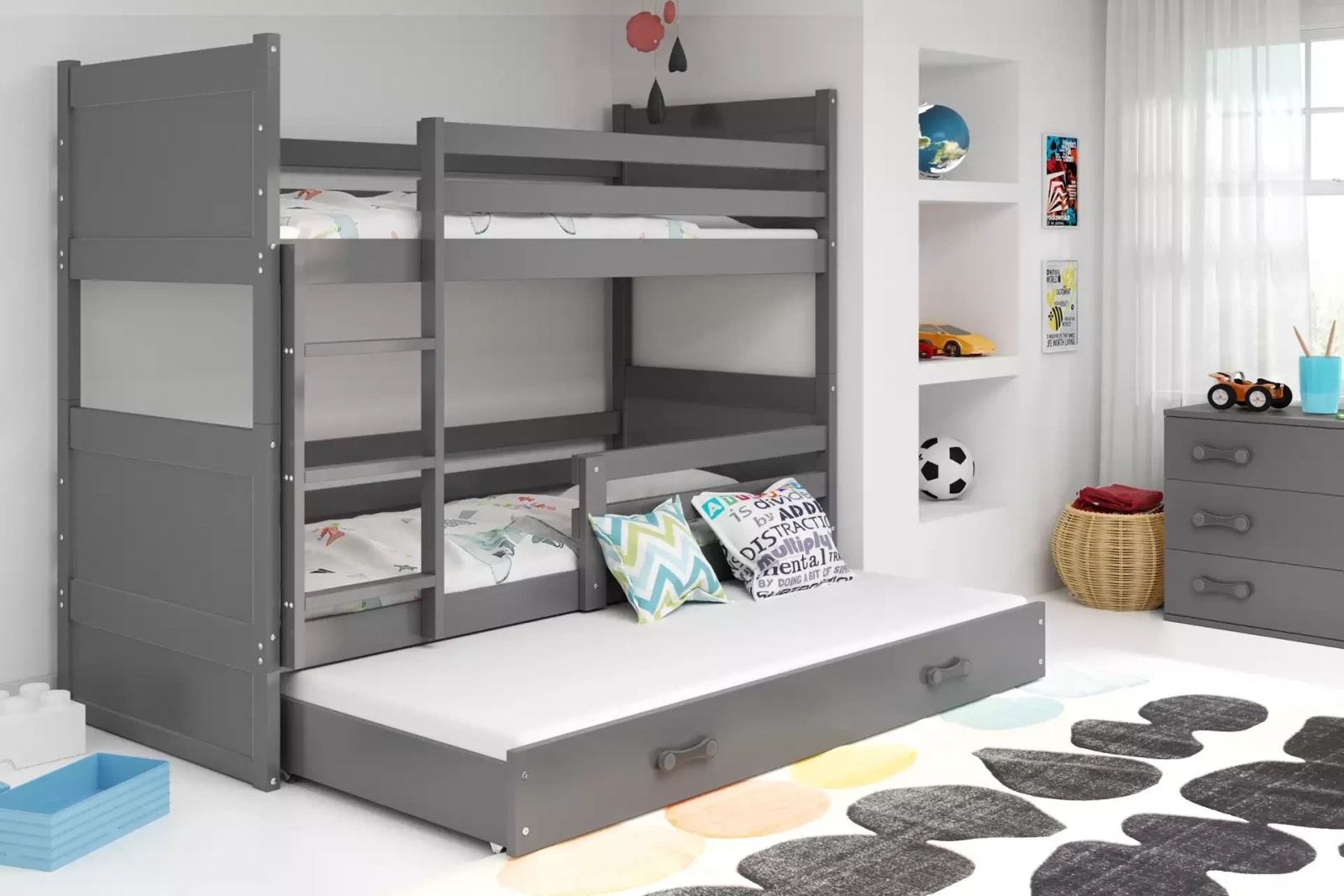 Rico 3 üléses tini emeletes ágy 90x190 fiókkal, szürke