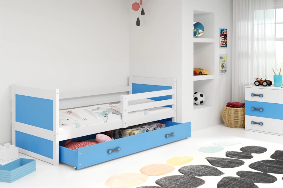 Rico egyszemélyes tiniágy 90x190 matraccal és fiókkal, fehér/kék