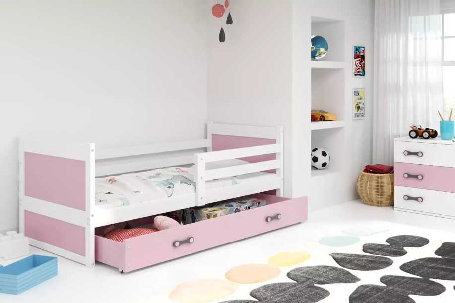 Rico egyszemélyes tiniágy 90x190 matraccal és fiókkal, fehér/rózsaszín