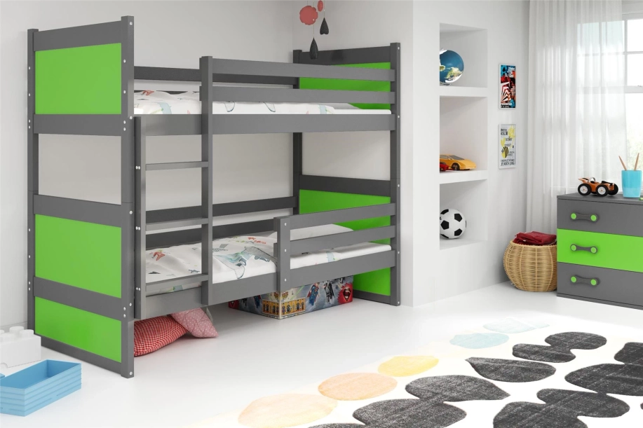 Rico emeletes ágy 90x190, matraccal, szürke/zöld