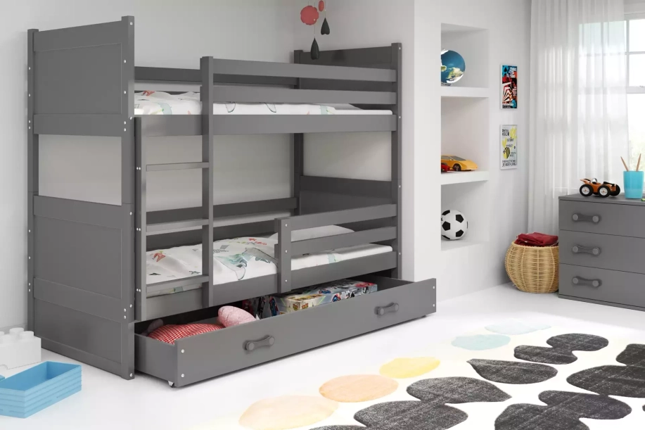Rico tini emeletes ágy 90x190, szürke, fiókos, szürke