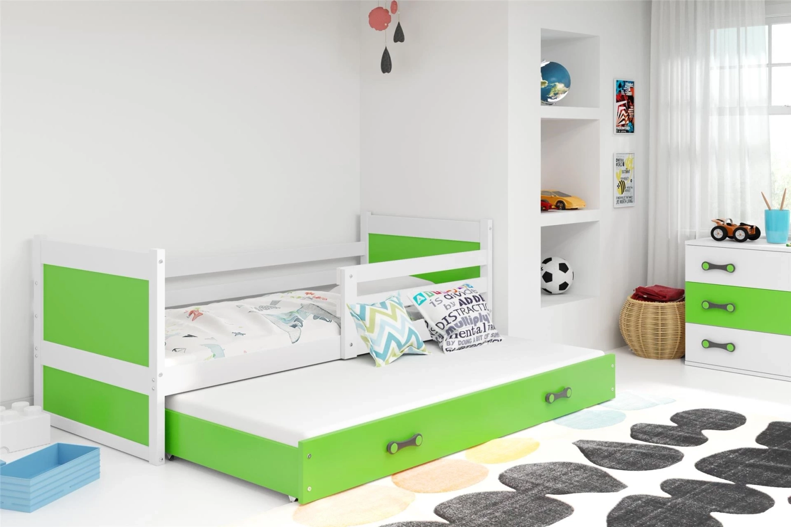 Rico tini franciaágy 90x190, matraccal és fiókkal, fehér/zöld